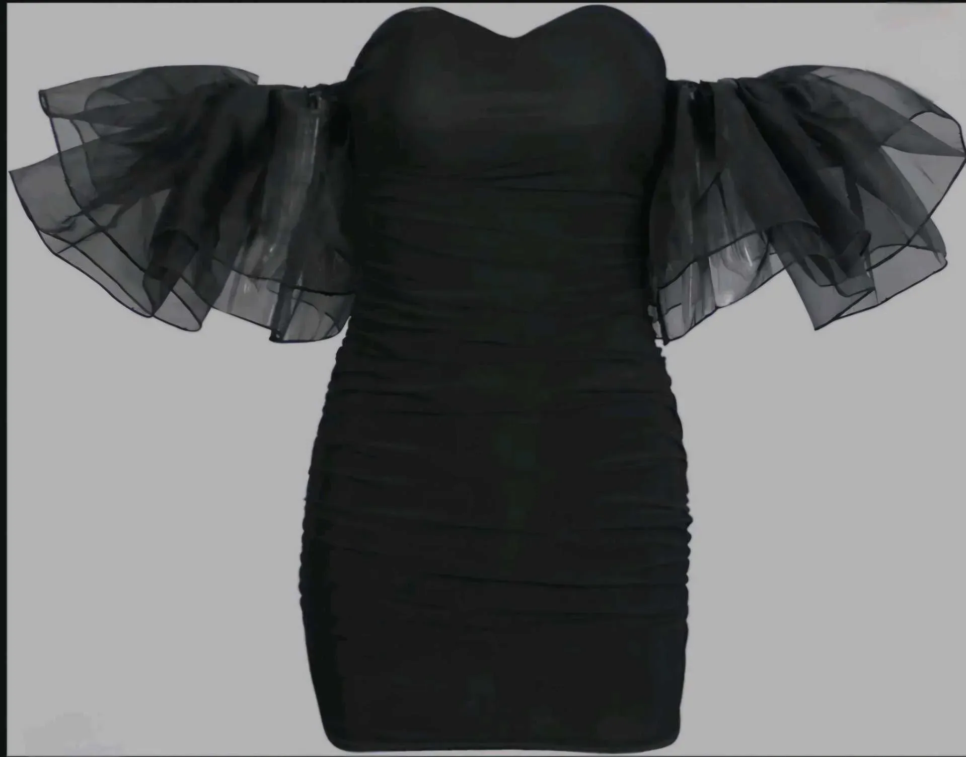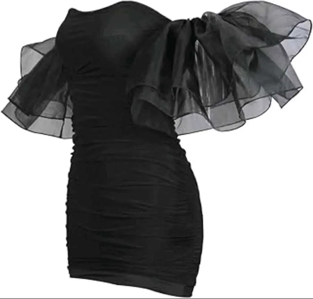 Este elegante vestido negro con mangas hojaldre es la pieza perfecta para destacar en cualquier ocasión. Con un diseño de moda que resalta la feminidad de la mujer, este vestido es una elección ideal para lucir sofisticada y a la moda.